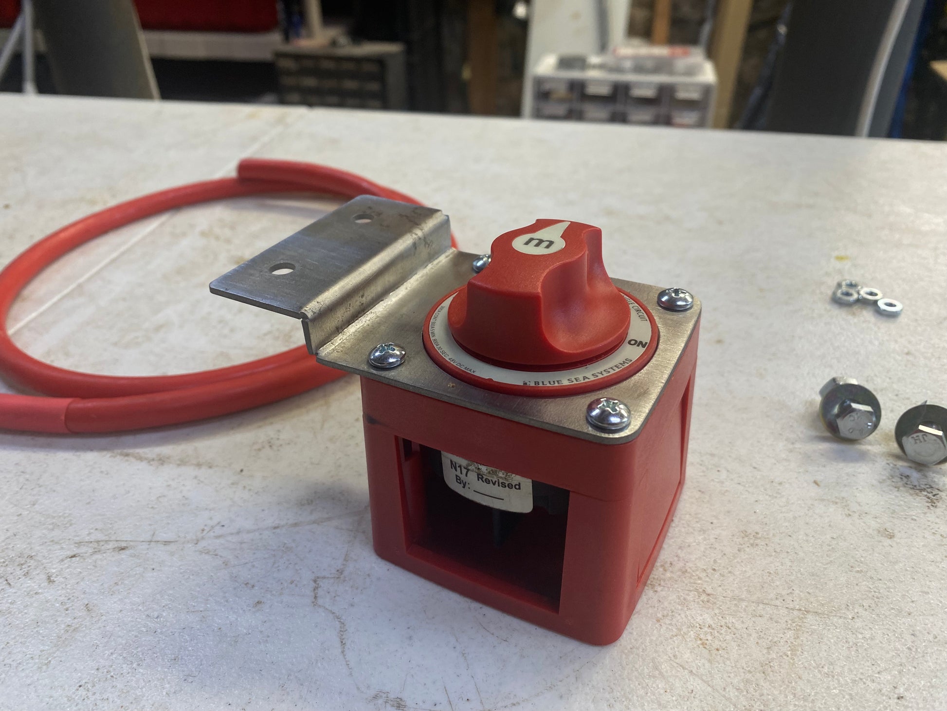 Kit includes Switch Bracket, Hardware, Blue Sea 6006 Switch, and a 1ft, 2 Gauge Terminated Battery Cable.